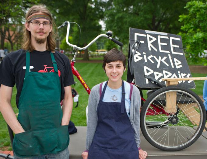 The EPA named Georgia Tech one of the "best places for commuters" for its range of eco-transit options, from carpooling to mass transit; natural gas–powered buses move more than 2 million riders per year. Above, as part of Georgia Tech's annual Earth Day celebration — one of the Southeast's biggest — student volunteers offer free bicycle repairs. The 440-acre Atlanta school was also named a Tree Campus USA for its 25 percent arboreal cover. Despite all that foliage, water usage hasn't increased since 2001 — impressive, considering that the school's interior square footage has doubled since then. Everything built after 2008 is LEED certified, and a 1.4-million-gallon stormwater cistern helps conserve. The Yellow Jackets have been recycling since 1996, diverting an annual mass of 600 tons.