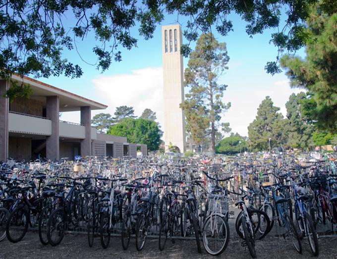UCSB puts up formidable numbers: 44 of its buildings are LEED certified, 47 percent of academic departments offer a class about sustainability (for a total of 321 classes and 217 faculty members who do eco-research), 50 percent of food served is local, and 75 percent of waste gets saved from the landfill via recycling and composting; the goal is to get that latter percentage to 100 by 2020. The Gauchos have also, since the late 1990s, lowered their electricity use by a third (10 on-campus photovoltaic systems help), their water use by a quarter, and their food waste by almost 35 percent. A whopping 94 percent of students take alternative means of transit to class — there are more than 10,000 bicycle parking spaces on campus to accommodate 10 miles of bike paths.
